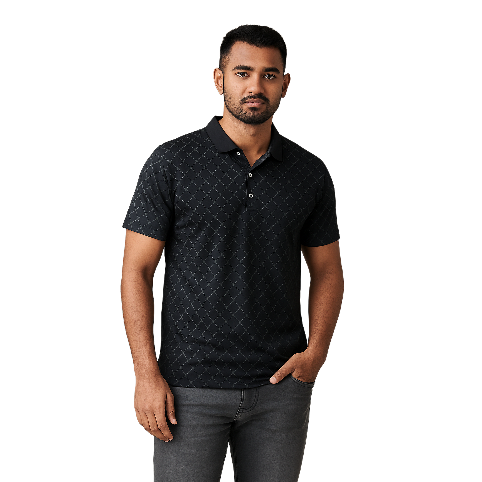 Men' Black Burbury Designed T-Shirt With Collar – Classic Fit.