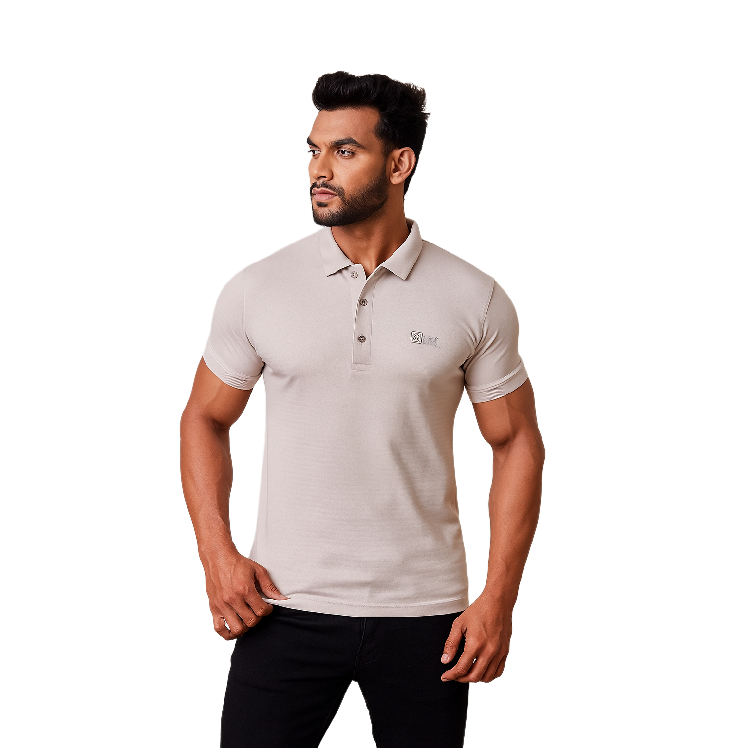 Men' Beige Designed T-Shirt With Collar – Classic Fit.