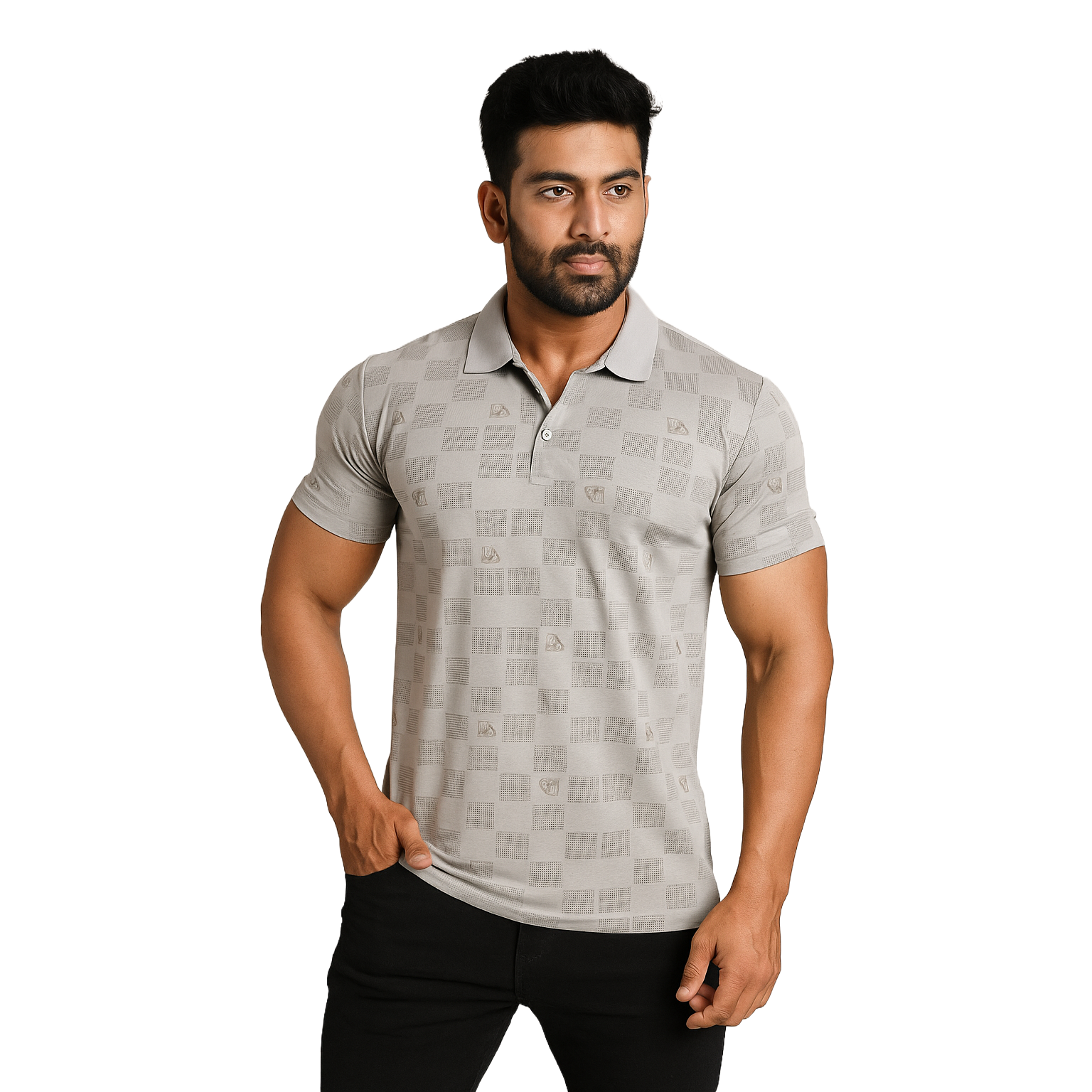 Upgrade your everyday style with this Men's Classic GREY Designed T-Shirt, a perfect blend of comfort, elegance, and modern design. Crafted from premium-quality cotton, this slim-fit polo offers a sleek silhouette and breathable wear for all-day ease. The shirt features a sharp, contrast-tipped collar, a subtle two-button placket, and an embroidered chest logo that adds a refined, signature touch.