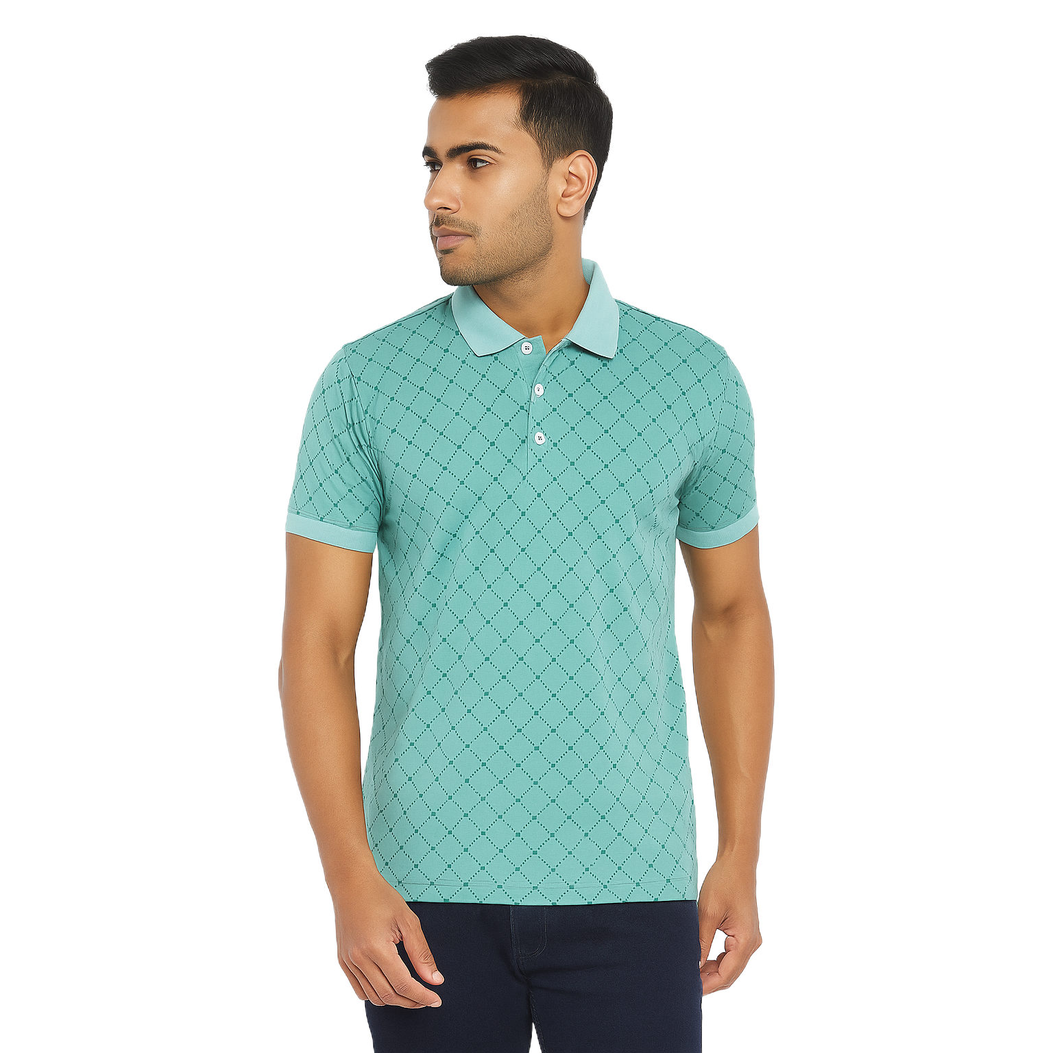 Men's Green Burbury Designed T-Shirt With Collar – Classic Fit.